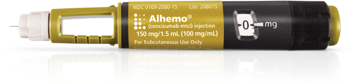 | Alhemo® (concizumab-mtci) injection 60 mg, 150 mg, or 300 mg is a prescription medicine used for routine prophylaxis to prevent or reduce the frequency of bleeding episodes in adults and children 12 years of age and older with hemophilia A with factor VIII inhibitors or hemophilia B with factor IX inhibitors. |